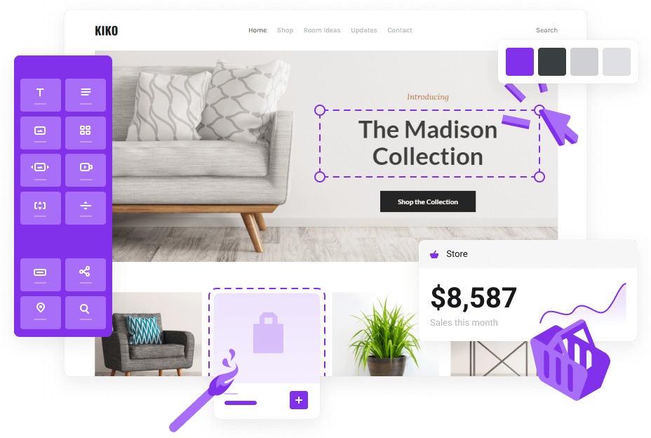 The easy drag & drop builder allows you to create a professional website with no technical skills required. Choose different elements to add photos, maps or videos by just dragging and dropping them into place, right from your web browser.